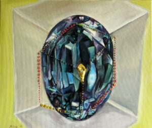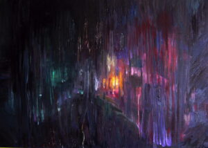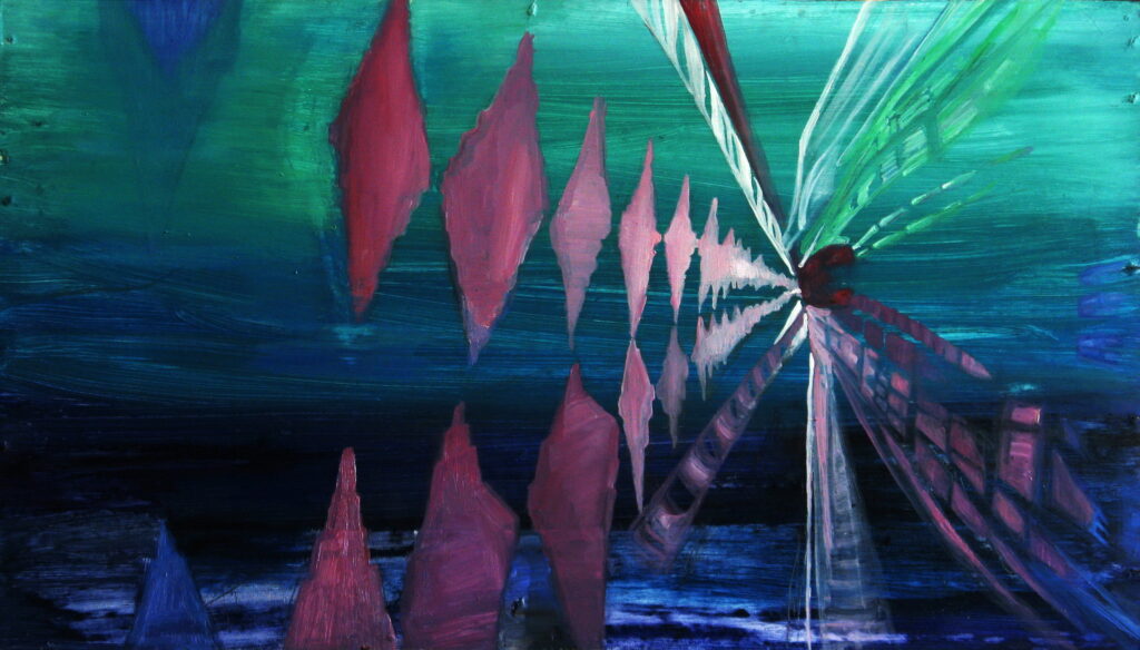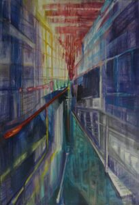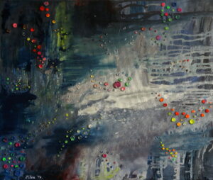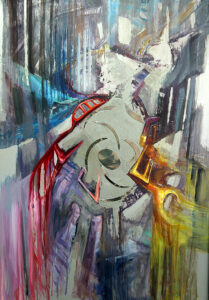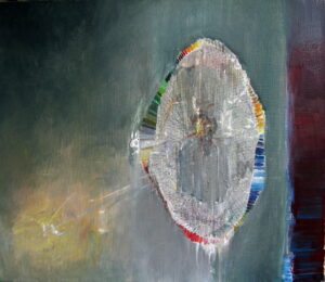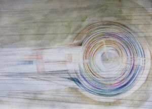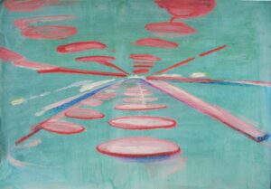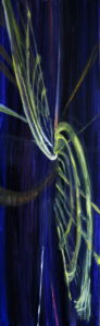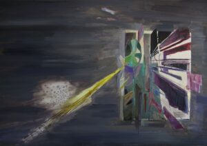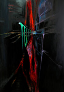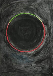 The author is developing the project “Distorted Space” (from 2015. to 2017.) as part of their Ph.D. thesis research. This project explores the connection between scientific concepts and visual, symbolic, and cultural contexts. The visual works are created using various media, including traditional manual techniques such as paintings and drawings, as well as digital graphics and video clips. The aim of the project is to integrate visual, aesthetic, and intuitive methods with scientific research and achievements. The research is based on sequences from Stanley Kubrick’s film “A Space Odyssey 2001” (1968), which represent space-time distortion due to acceleration in an abstract manner. The artworks, including video objects, digital collages, object images, and light installations, visualize scientific and philosophical concepts related to simulation and reality. Through the integration of text phrases into a visual concept, the author aims to encourage questioning of the boundaries between the real and the imaginary, time categories, the limits of body and mind, and the individual and the collective.